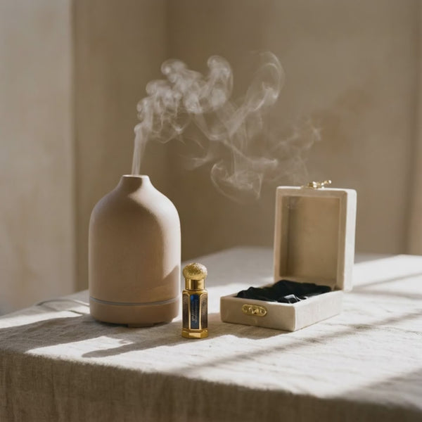 Three drops in a diffuser. Within 90 seconds, your space transforms. The air becomes silk. No charcoal, no ritual, no smoke. Just the purest expression of what sultans burned. This is what sacred space actually feels like.