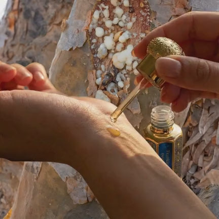 We distill this oil by hand from sacred frankincense trees in Oman.