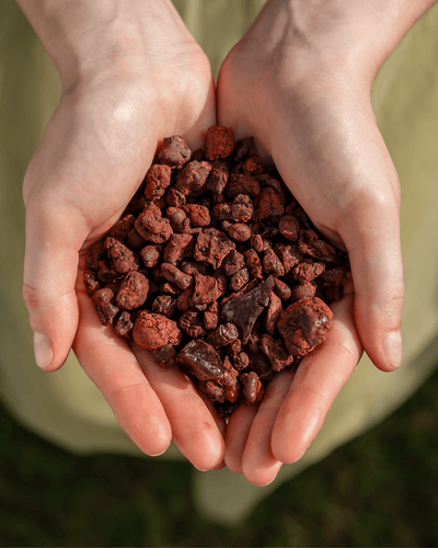 Set the glowing charcoal in your terracotta vessel. The handmade clay absorbs heat, protecting your surfaces.